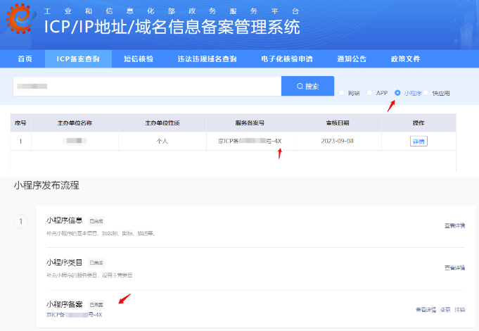 备案成功后会接收到工信部的备案通过通知,备案通过后可以提交小程序进行发布