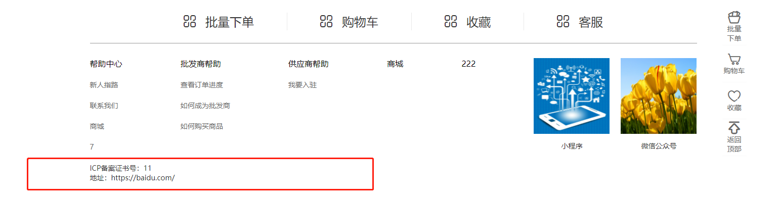 4.客服链接:可放置中台客服链接,填写以https:// 开头的客服链接,前端采购商城点击可跳转客服聊天页面;