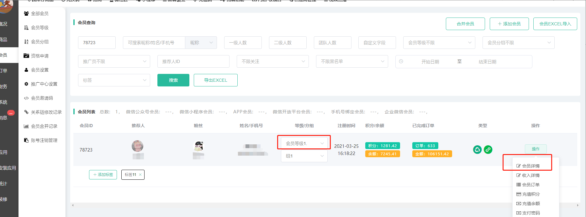 原因:不能直接会员列表这里修改等级操作,这里手动修改不是会员详情里面修改会员等级保存的话,代理商等级不会同步升降级,需要在会员详情里面重新保存下就能触发代理商升降级事件了