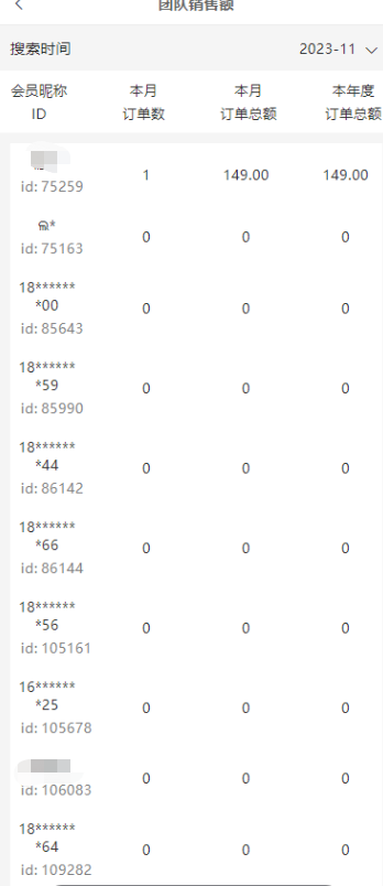 4、点击我的团队销售额查看团队下级中,我有获得销售额的订单总额