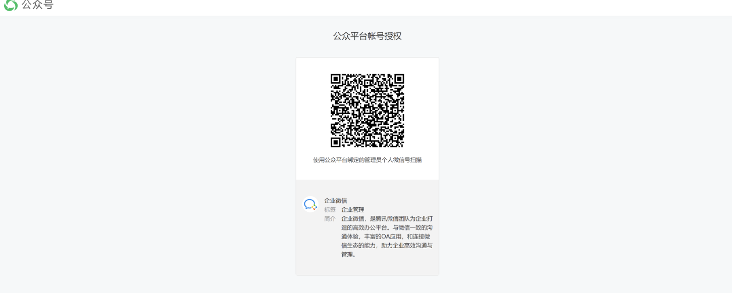 跳转到微信公众平台扫码,请使用商城绑定的公众号/小程序总管理员扫码授权;