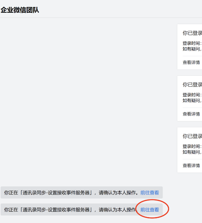 下面用电脑端企业微信截图讲解,管理员收到企业微信团队消息,点击前往查看,确认操作