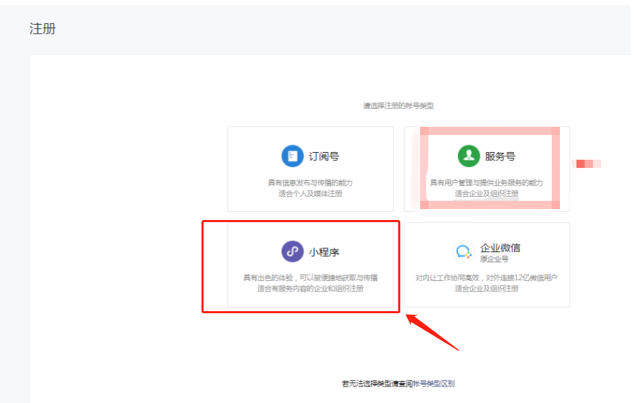 1、进入官网后,点击“立即注册”,进入类型选择页面,选择“服务号”