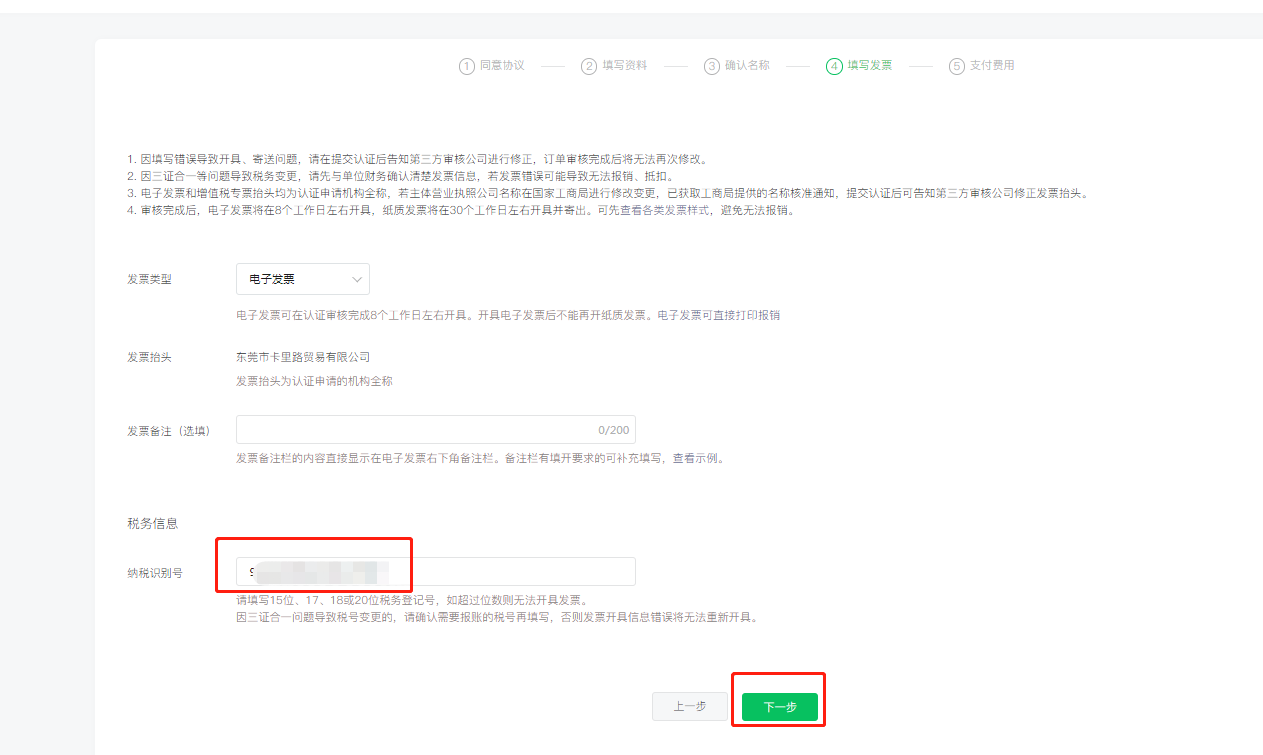 4:扫码支付,填写发票-输入纳税识别号-下一步-扫码付款-等待腾讯审核-注意电话接听(以下案例10分钟完成认证)