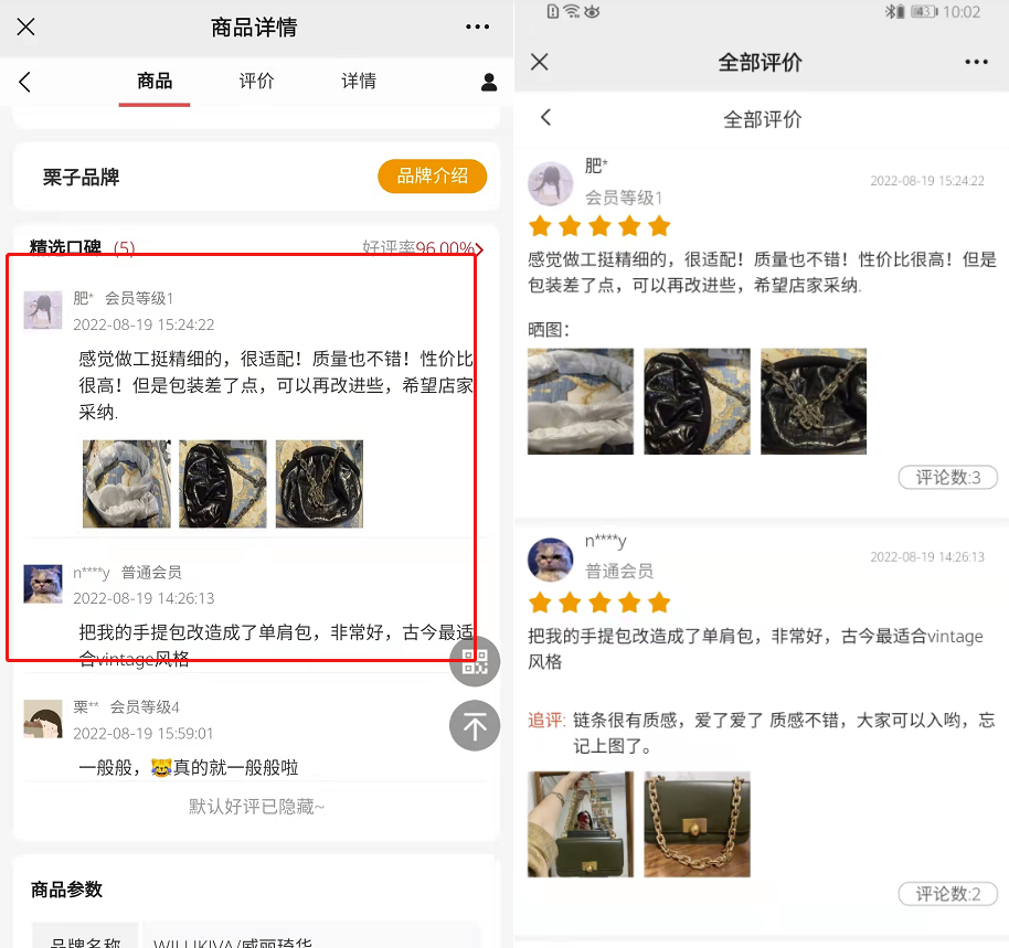 多个会员评价被置顶时,置顶评论按正序、倒序显示。