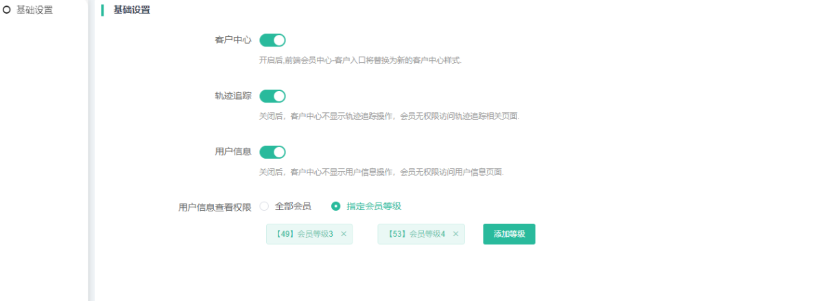(四)用户信息查看权限:全部会员、指定会员等级。